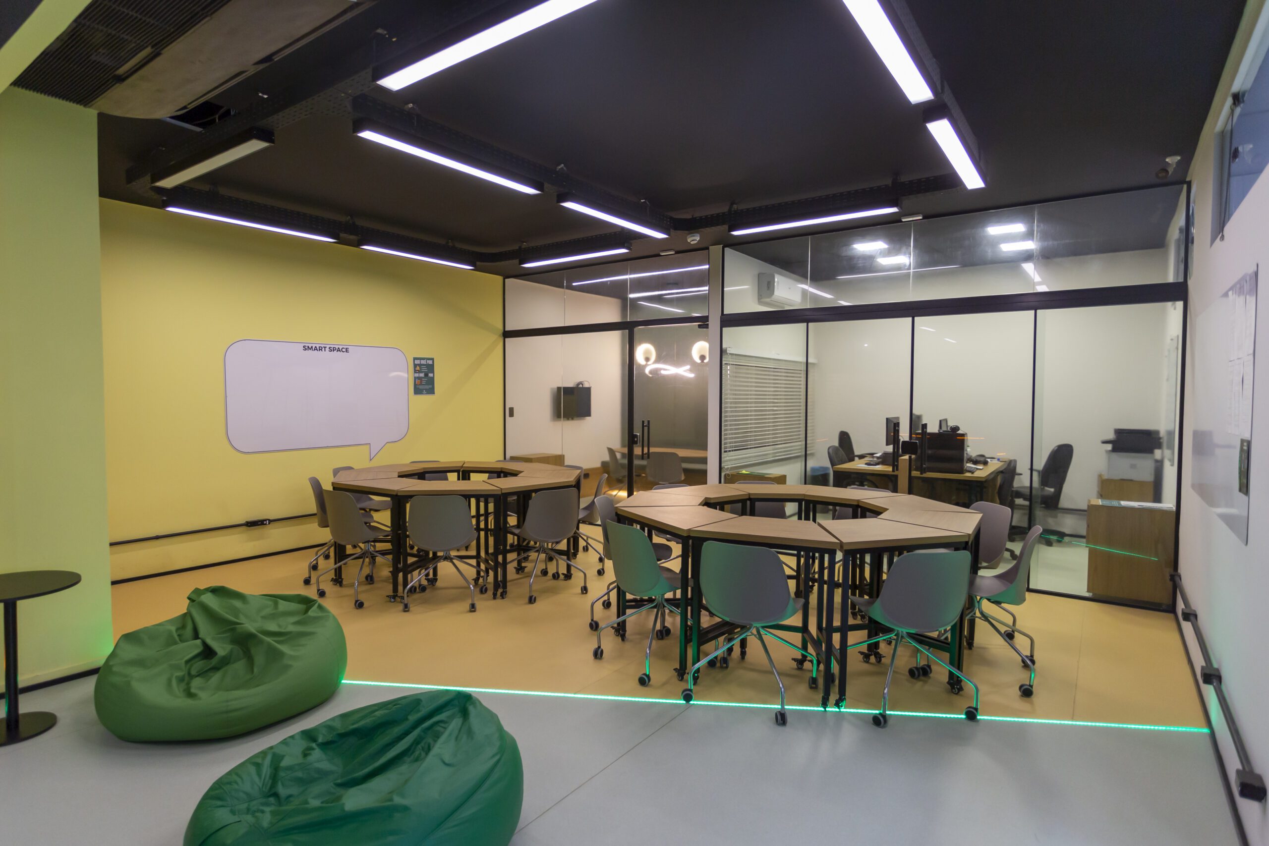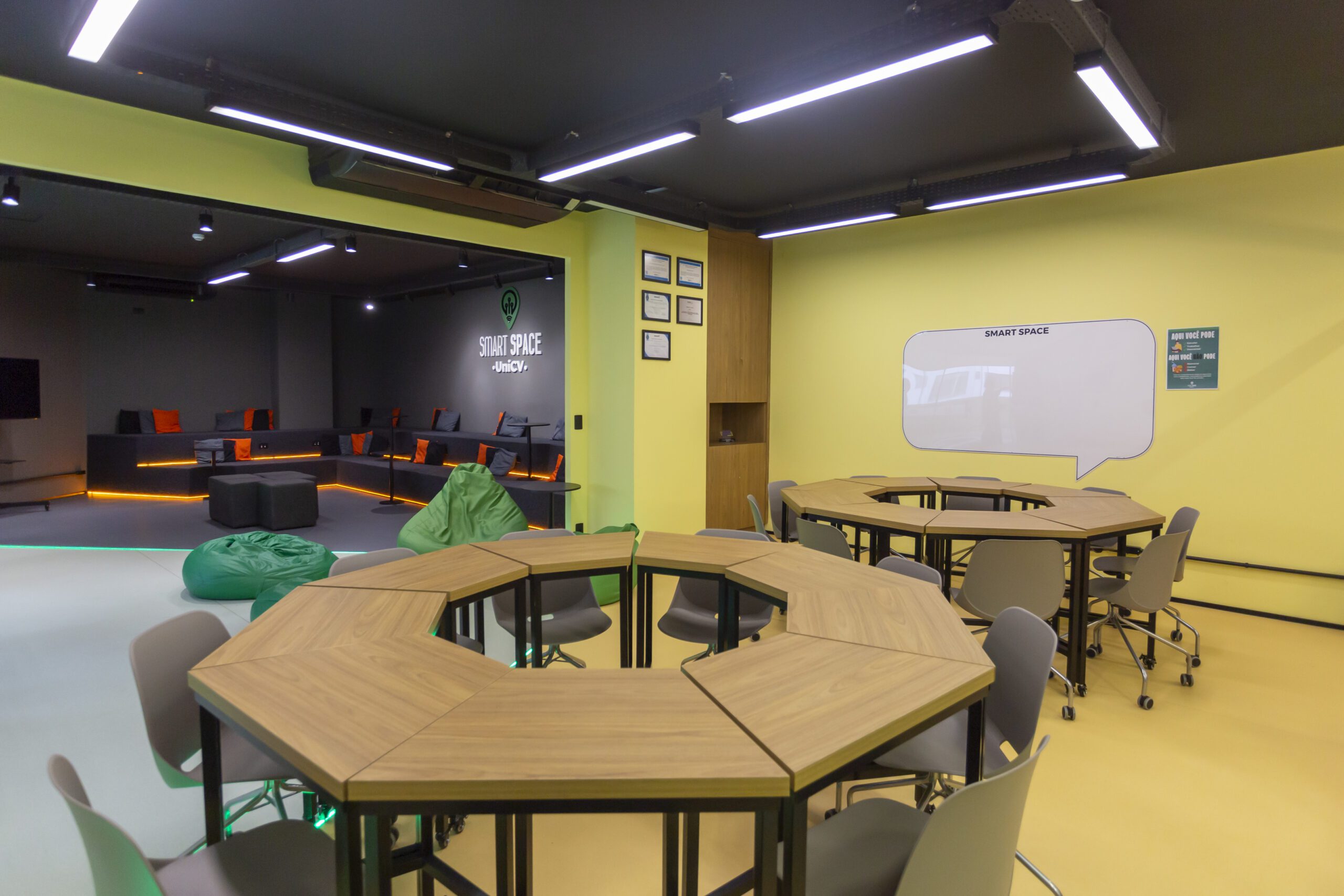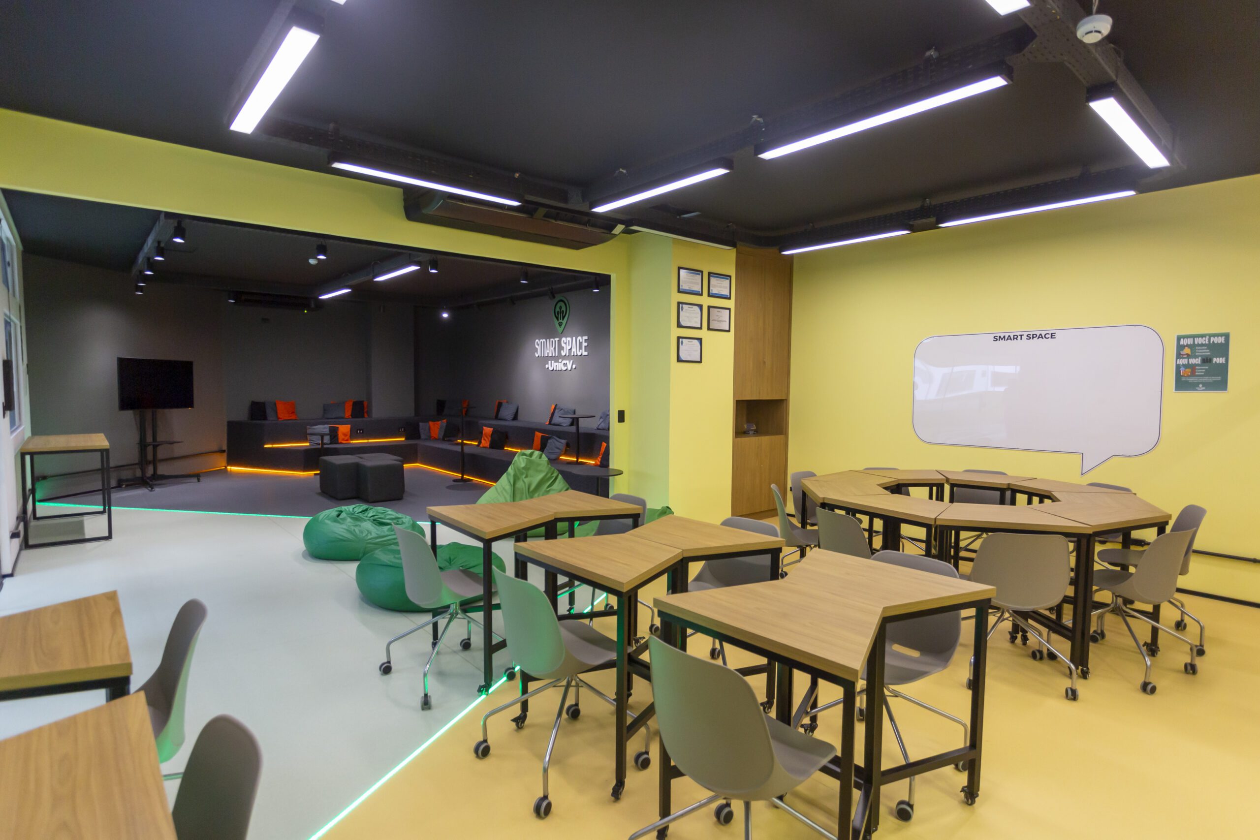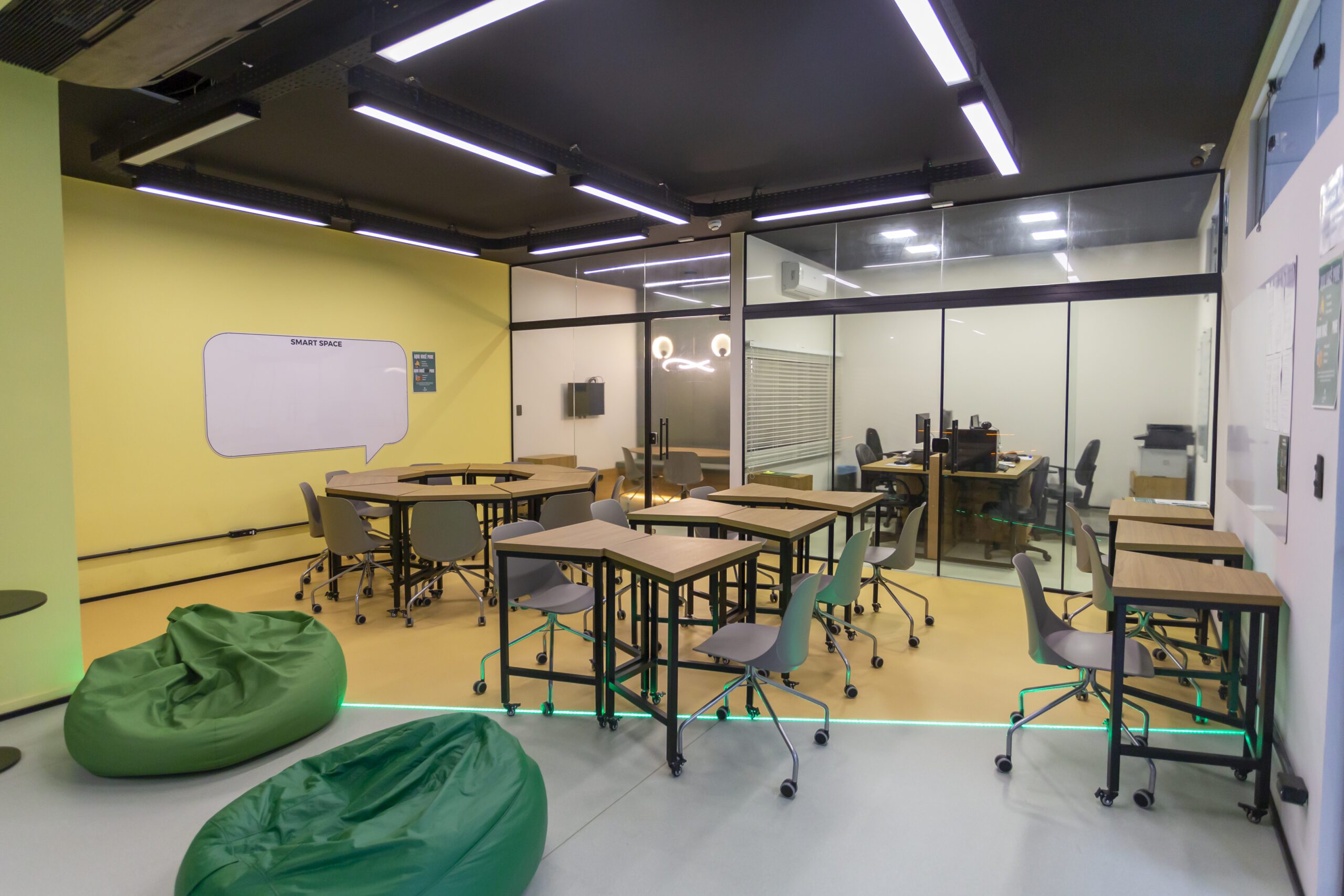 Um espaço de trabalho e estudo desenvolvido dentro de uma faculdade para cursos e aulas criativas.